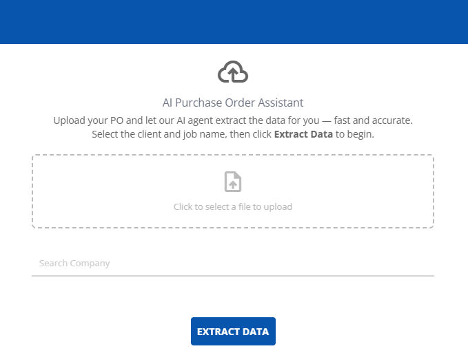 * On clicking that button, a dialog window is going to be opened where user is going to be asked to select a purchase order pdf file and type in the corresponding client for that PO pdf.\