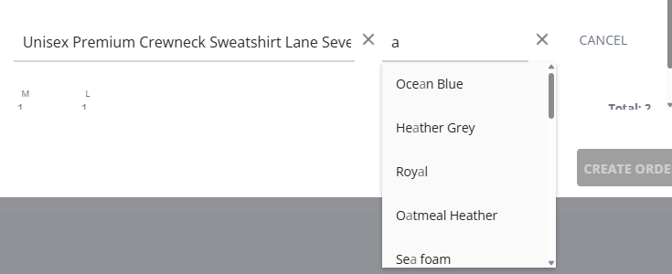 * Once user selects a product, all available colors for it are going to be listed in the next input.
