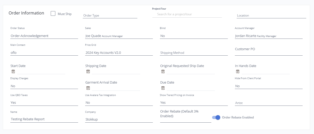 * Now a rebate percentage can be set at client, order and/or product level so it can be applied to the garment cost for all client's orders or for specific orders.&#x20;